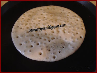 Heat griddle or tawa in medium heat, cut onion into half and rub on griddle( This makes dosas to come off without sticking to pan )Pour a laddleful of batter. DO NOT SPREAD, and let it cook gradually over medium heat.